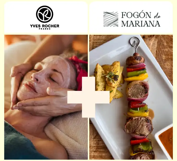 AHORRA UN 51%. Llévate una limpieza facial individual en Yves Rocher y un 2x1 en Brochetón de solomillo de ternera de la Janda y verduras a la parrilla en  Fogón de Mariana. Podrás canjear tu plan hasta el 28/02/2026.