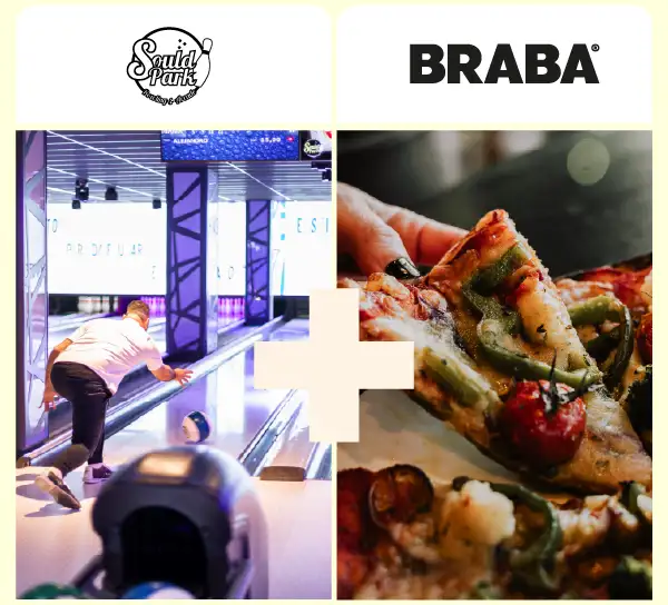 AHORRA UN 47%. Llévate una partida de bolos para dos personas y un 2x1 en pizza a elegir en BRABA. Podrás canjear tu plan hasta el 28/02/2026.
