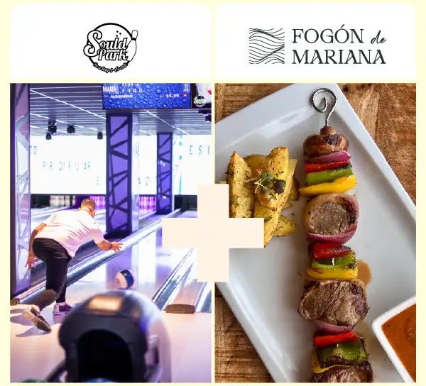 AHORRA UN 40%. Llévate una partida de bolos para dos personas y un 2x1 en Brochetón de solomillo de ternera de la Janda y verduras a la parrilla en  Fogón de Mariana. Podrás canjear tu plan hasta el 28/02/2026.